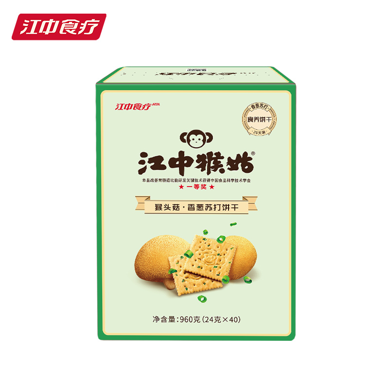 首页 / 休闲零食 / 糖食类 / 江中食疗江中猴姑葱香苏打猴头菇饼干20天装960g40小包