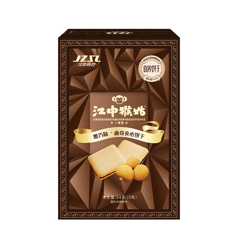 江中猴姑黑巧味曲奇夹心饼干(64g)