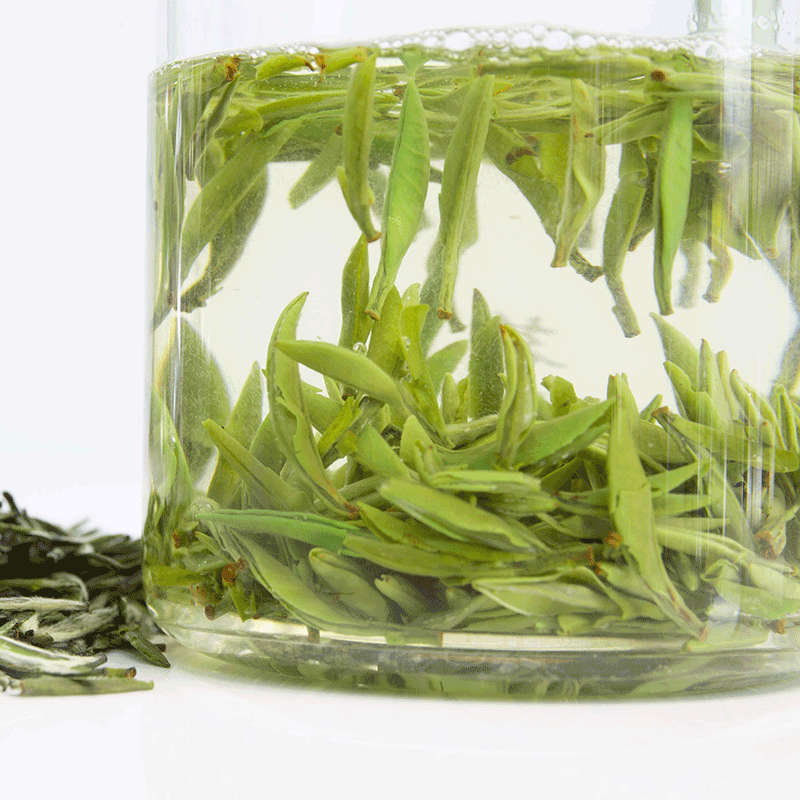 茶叶外形圆绿,如松针,带白毫,紧直。雨花茶必须在谷雨前采摘,采摘下来的嫩叶要长有一芽一叶,长2.5至3公分,制作过程中全部为手工完成。雨花茶冲泡后茶色碧绿、清澈,香气清幽,滋味醇厚,回味甘甜。