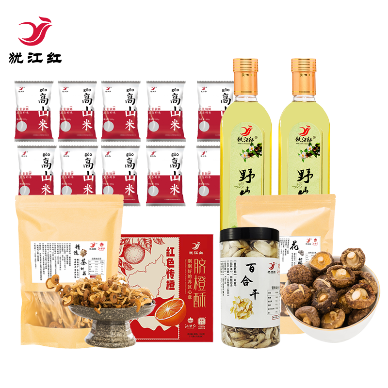 犹江红400元套餐(脐橙酥 山茶油500ML*2 氮气包装米500g*10袋 茶树菇200g 花菇254g/瓶 百合250g)